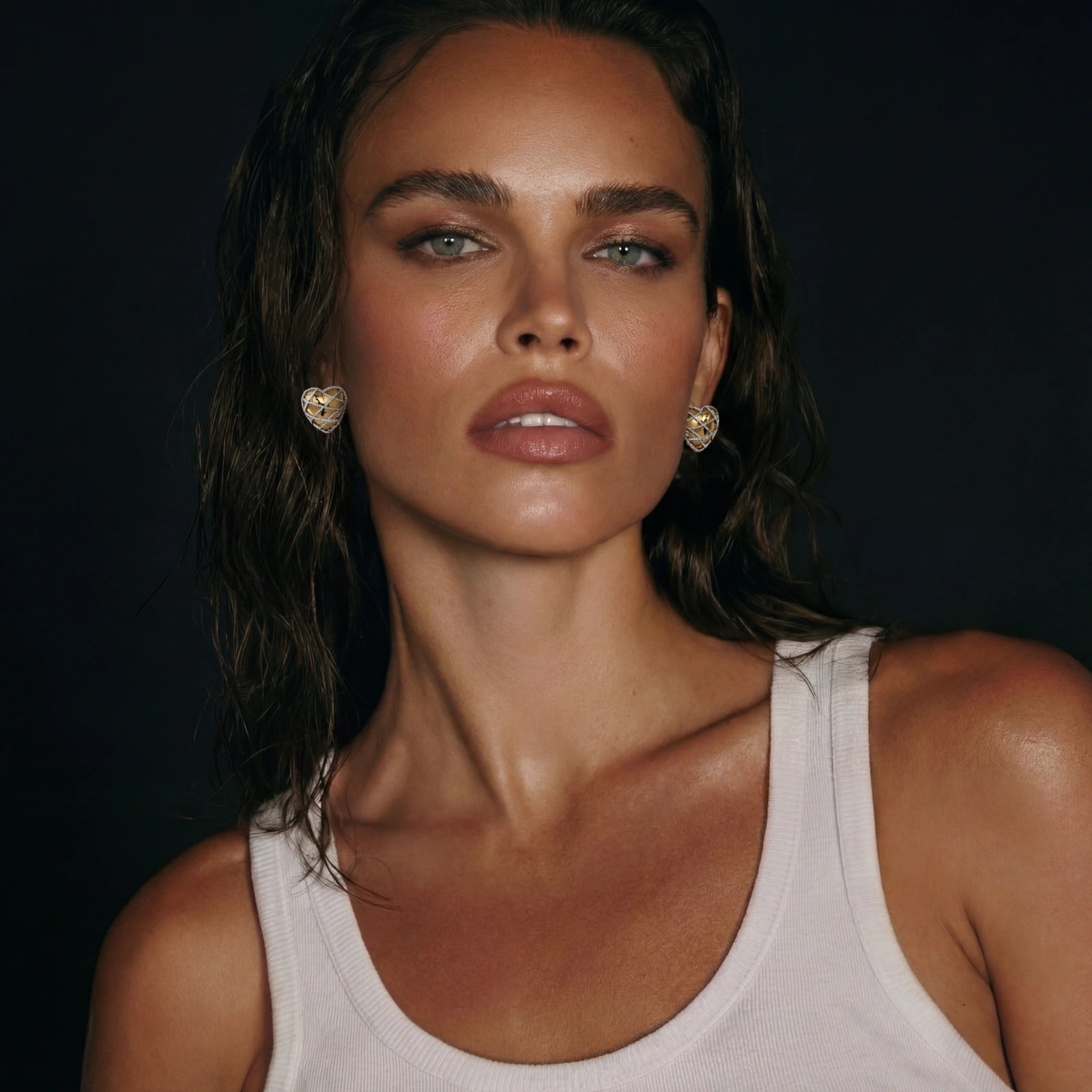 Intricate lattice hearts in 18K gold plating channel confidence and warmth with every wear.